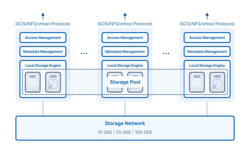 The distributed architecture eliminates controller bottlenecks, and the concurrent performance increases linearly with the number of nodes.